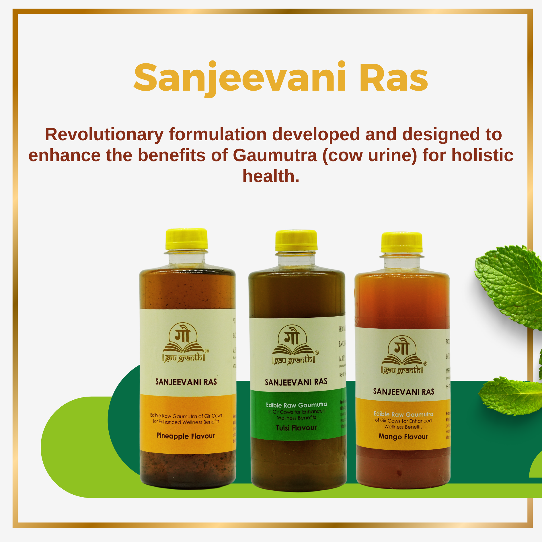 Sanjeevani Ras is a revolutionary formulation developed by Dr. Rakesh Agarwal, designed to enhance the benefits of Gaumutra (cow urine) for holistic health.