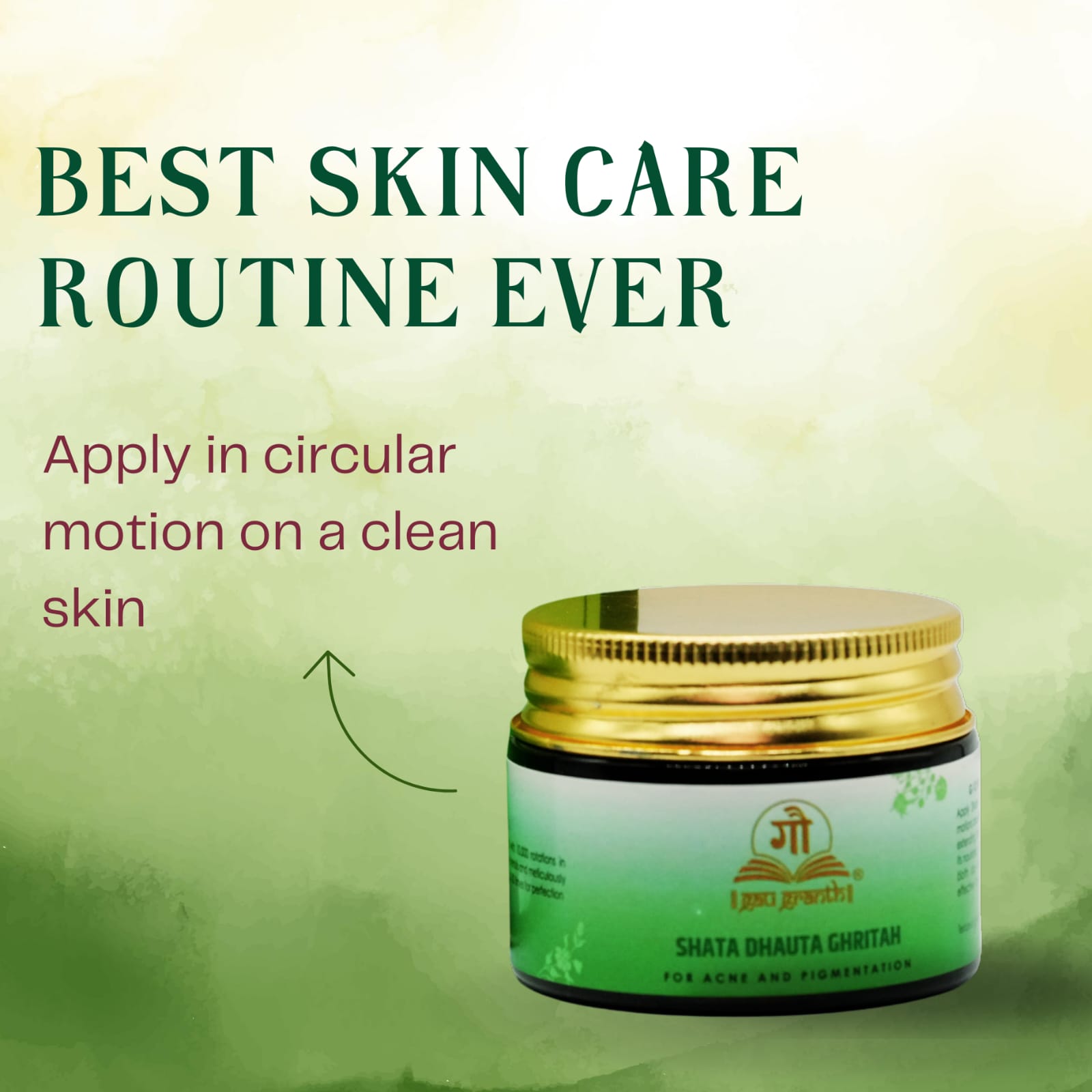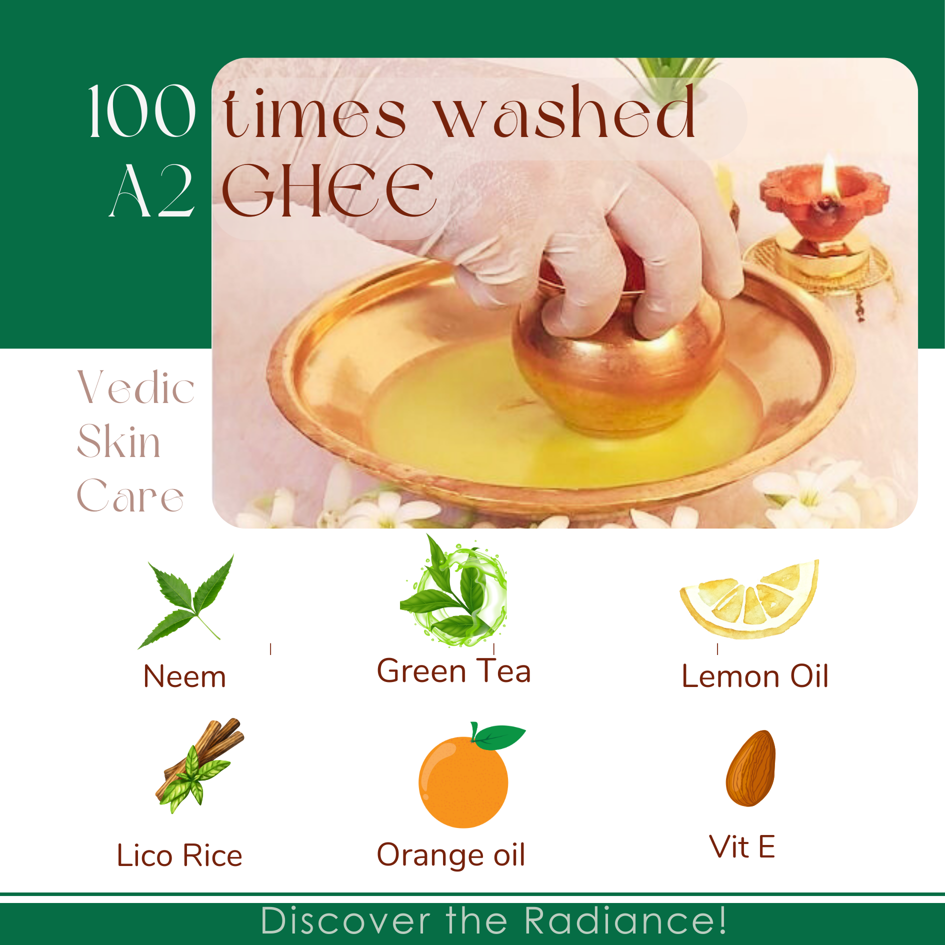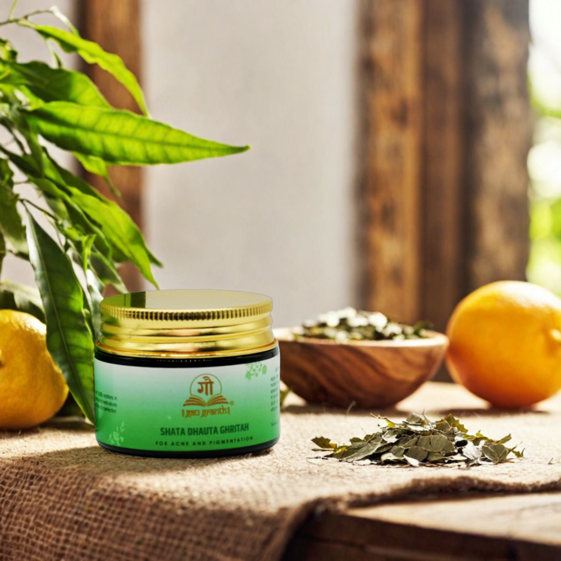 Crafted in small batches and sourced from the pure breed cows of Gau Mandir Gaushala, Shata Dhauta Ghrita follows a strict Ayurvedic process, ensuring it retains its healing properties and maximum potency.